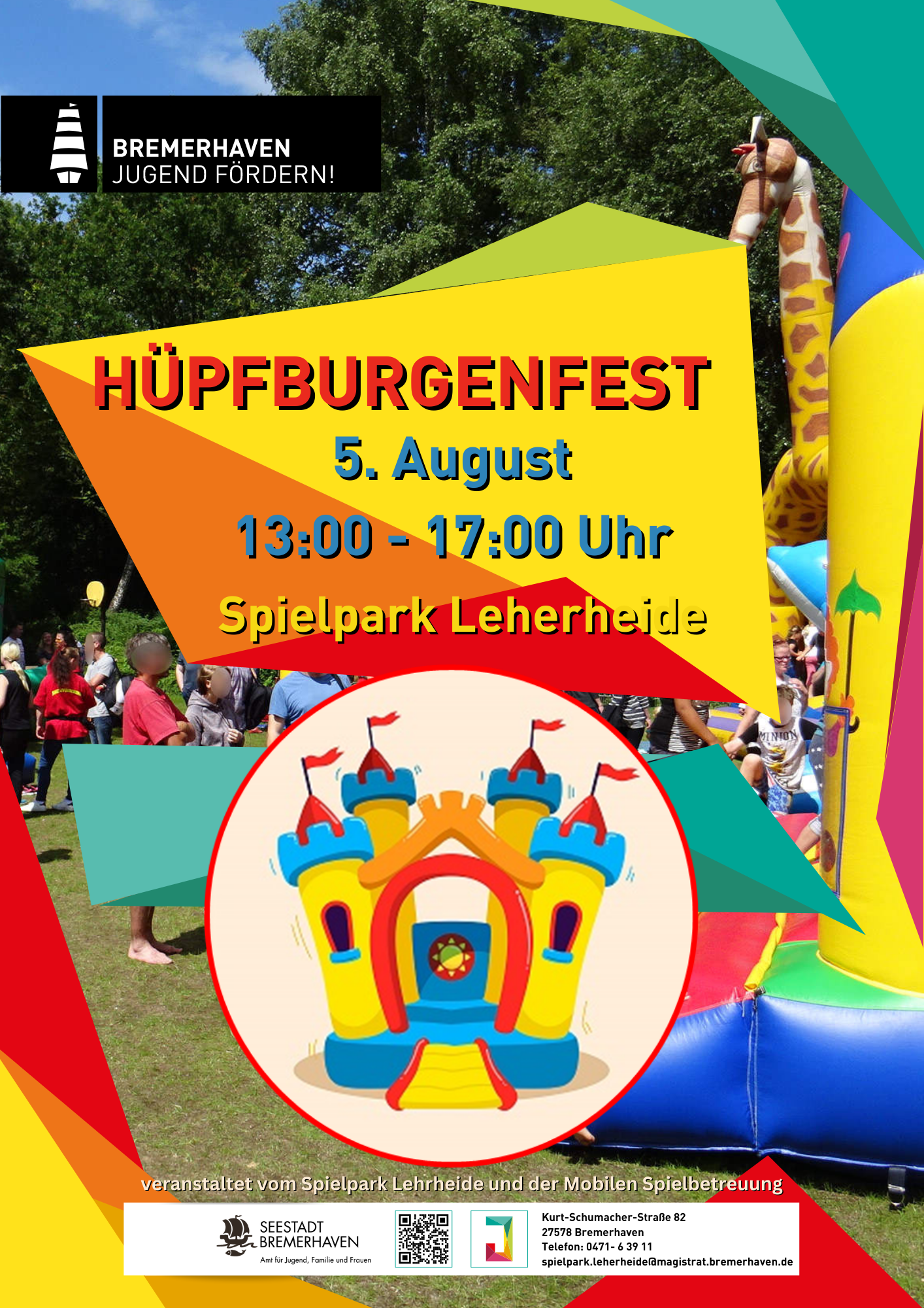 Der Spielpark Leherheide lädt ein zum großen Spass auf 9 Hüpfburgen am 05. August von 13:00 - 17:00 Uhr. Bei