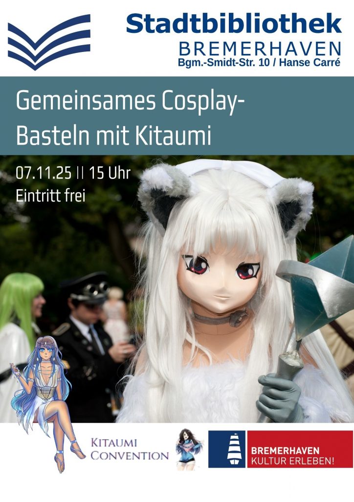 Mach mit, gestalte dein Cosplay weiter und werde Teil einer kreativen Community – zusammen mit Kitaumi und der Stadtbibliothek Bremerhaven!